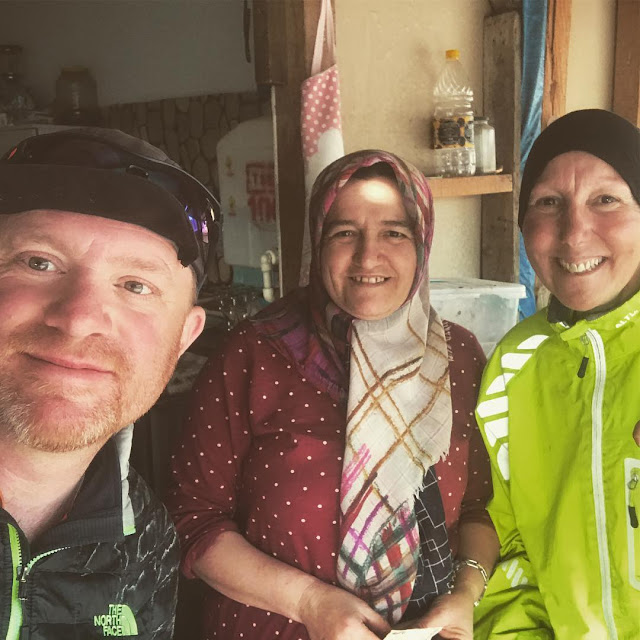 D-140 karayolunu takip eden Chriz ve Gab yolda gördükleri kişiler ile hem sohbet ediyorlar hemde fotoğraf çekiyorlar. Karacasu köyü Sarot termal devremülkleri yanında bulunan Erdoğan Yakut’un gözleme evinde gözleme yiyerek mola veren Chriz ve Gab sosyal medya paylaşımlarında; ” Şu an Türkiye’nin dağlarından güneye doğru ilerliyoruz. Kuzeydeki yoğun trafikli yollardan uzaktayız. Burada geçtiğimiz köylerdeki harika insanlarla tanışıyoruz” ifadelerini kullandılar. Chris ve Gabriella’nın bisikletlerinde İngiltere, Türkiye ve kendilerine ait olan logo bayrakları dikkatimizi çekti.