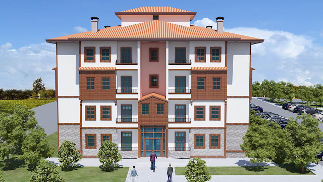 Koruma altına alınmış Mudurnu eski Türk evlerinin mimari dokusu dikkate alınarak tasarlanan projede; ahşap görünümlü cephe kaplamaları, zemin kat seviyesinde taş kaplamalar, dekoratif pencereler, söveler, kat silmeleri, payandalar, cumba görünümlü çıkmalar modernize edilerek uygulandı.